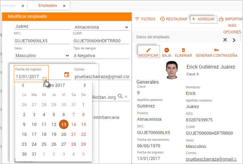 Empleados / Agregar o Modificar
