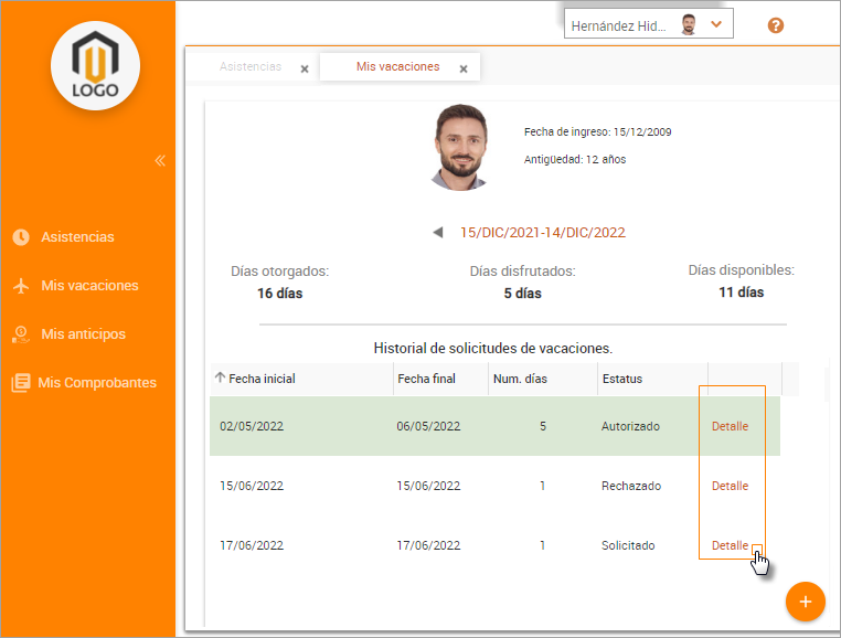 NOI Asistente Web / Mis vacaciones