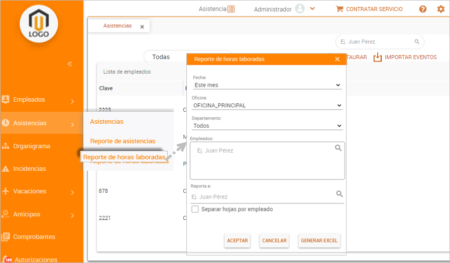 vacaciones, incapacidades, entre otros, en rangos de tiempo