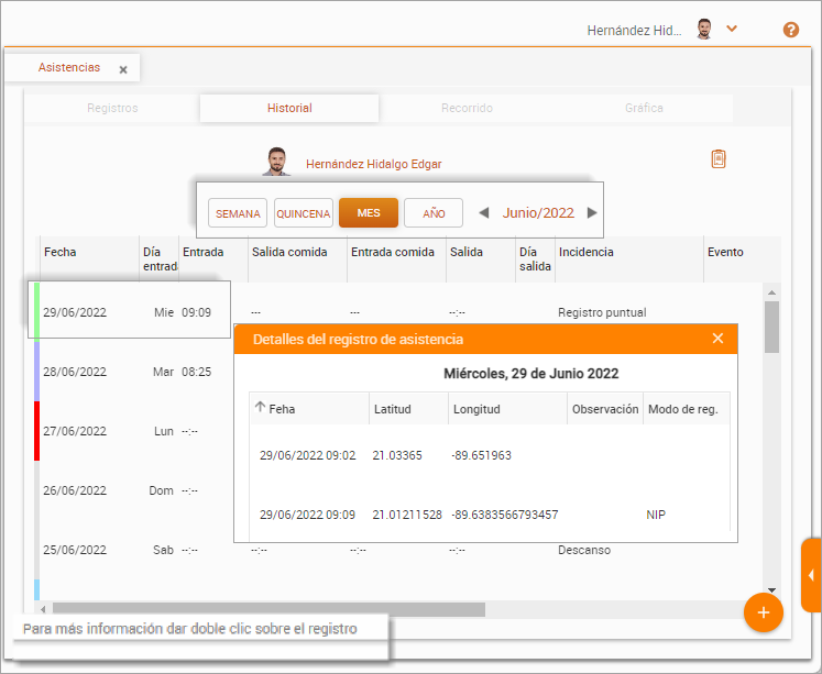 NOI Asistente Web / Asistencias / PestaƱa Historial