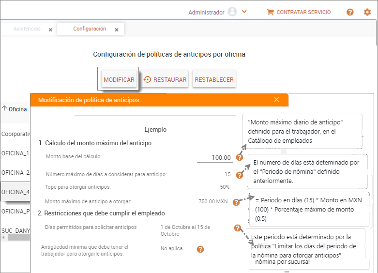 Ventana principal /Configuración / Anticipos / Modificar