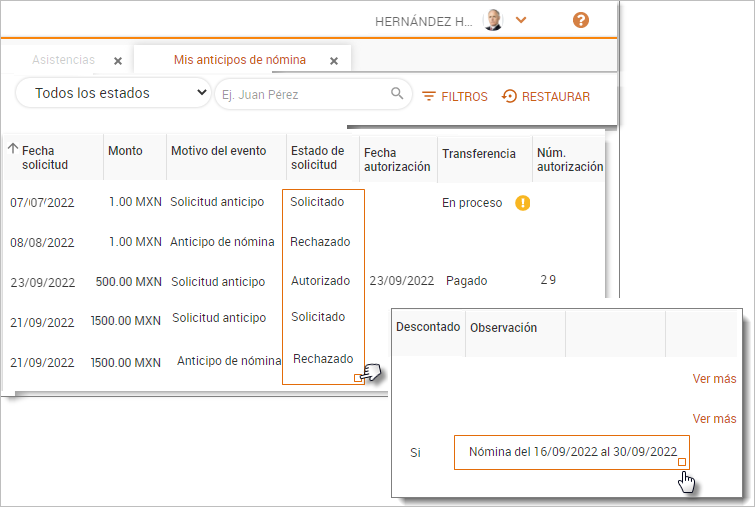Desde un perfil de colaborador / Mis anticipos