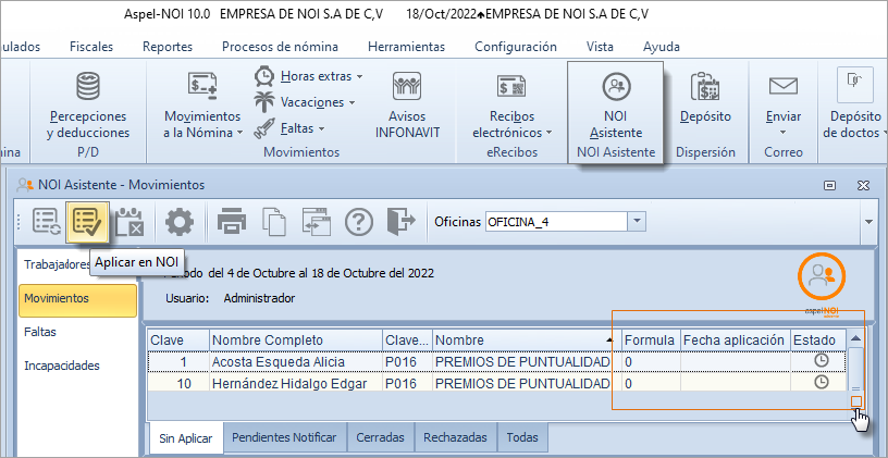 Menú Nómina / Nómina del trabajador / Seleccionar trabajador / Sección Percepciones