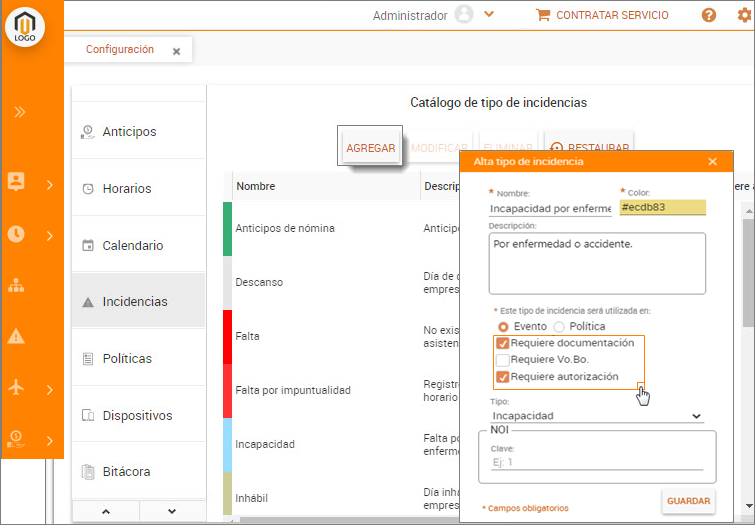 justificaciones, Anticipos de Nómina, incapacidades, entre