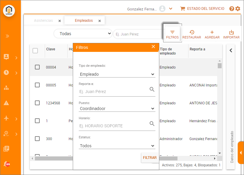 Ventana principal / Empleados / Filtros