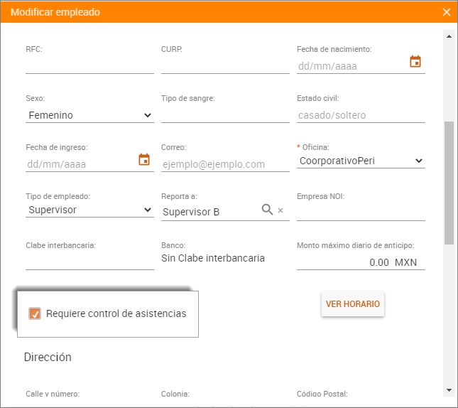 el tipo de horario que requieras para el colaborador.