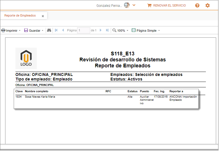 Módulo Empleados / Reporte de Empleados