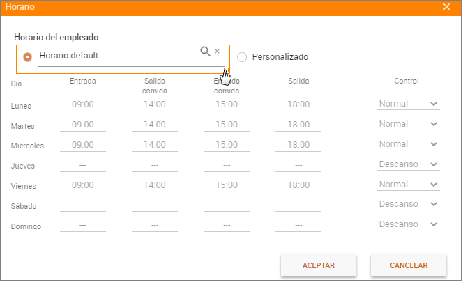 Módulo Empleados / Agregar / Botón Ver Horario / Editar / Seleccionar horario